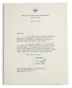 NIXON RICHARD (1913-1994). Président américain L.S. « Dick », Washington 31 juillet 1956, à Samuel K. McCONNELL Jr ; 1 page petit in-4 dactylographiée