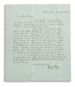 Lettre pathétique sur le tour désespéré qu’a pris sa vie d’écrivain maudit, et son défunt Broadway Journal dont la faillite précipita sa propre déchéance.