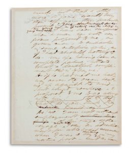 Le manuscrit, de premier jet, à l’encre brune, présente des ratures et corrections, et quelques notes ajoutées au crayon.