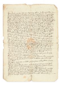 [CADIÈRE (Affaire de la)]. MANUSCRIT, [1731] ; 1 page et demie in4 (petite déchir.). Nouvelle A LA main SUR L'AFFAIRE du pere GIRARD, jésuite accusé de corruption et de tortures envers la jeune mystique Marie-Catherine CADIÈRE (dont parle...