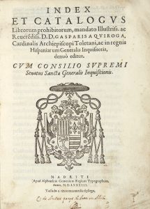 Index et catalogus librorum prohibitorum... Madrid, Alfonso Gomez, 1583. In-4 de (6) et 96 ff., vélin ivoire souple, restes de lacets (reliure de l'époque). L'INDEX DES LIVRES DEFENDUS. Pour contrecarrer principalement l'avancée du protestantisme,...