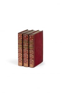 conseillers au parlement de Bretagne. Sans lieu, 1768. 3 volumes in-12, maroquin rouge, dos à nerfs ornés, pièces de titre et de tomaison de maroquin olive, Bordures intérieures décorées, tranches dorées (reliure de l'époque). Édition originale. L'illustration comprend 4 planches gravées et repliées : la "Liste des président et conseillers a la grecque du parlement de Bretagne commenfant le 22 May 1765” et 3 fac-similés d'écritures. L'AFFAIRE DE BRETAGNE. Procureur général du parlement de Bretagne, Louis-René de Caradeuc de La Chalotais était entré en rivalité avec le commandant en chef de la province, Armand de Vignerod du Plessis de Richelieu, duc d'Aiguillon. L'arbitraire et le centralisme démesuré avaient provoqué une fronde judiciaire et fiscale, puis la crise devint politique. Elle débouchera sur la réforme des parlements menée en 1771 par le chancelier Maupeou. La Chalotais fut condamné et exilé par le roi Louis XV ; il retrouva cependant sa position au parlement de Bretagne en 1775, après la mort du roi. Dix ans durant, de 1765 à 1775, l'Affaire de Bretagne a passionné la France et l'Europe : elle fut l'une des plus sérieuses attaques du pouvoir royal avant 1789. Elle a incarné la rivalité entre les provinces et la Cour. (Pocquet, Le duc d'Aiguillon et La Chalotais, I, 1900, p. XXXVIII : "Recueil fondamental.”) ON A RELIE, A LA FIN DU TOME III, DEUX PLAQUETTES DE VOLTAIRE : - [VOLTAIRE]. Relation de la mort du chevalier de la Barre par Monsieur Cass***, à Mr. le marquis de Beccaria, écrite en 1766. Nouvelle édition. Amsterdam [Genève, Cramer], 1768. Deuxième édition publiée à Genève par Cramer. Elle a paru la même année que l'édition originale donnée à Amsterdam par Marc-Michel Rey. (Bengesco II, p. 170). Fameuse lettre adressée à Beccaria, pour qui Voltaire avait publié en 1766 un Commentaire sur le livre Des délits et des peines. La Relation contient un historique précis de l'affaire d'Abbeville et du procès du chevalier de La Barre. On sait que La Barre avait été reconnu coupable et exécuté : après avoir été décapité, son corps fut brülé. Les juges avaient ordonné qu'on brülât avec le corps un exemplaire du Dictionnaire philosophique. - [VOLTAIRE]. Les Droits des hommes, et les usurpations des autres. Traduit de l'italien. Amsterdam [Genève, Cramer], 1768. Édition originale publiée à Genève par Cramer. L'ouvrage est un pamphlet dirigé contre la puissance pontificale : "Voltaire s'attaque aux "fables” qui la fondent (...) et prétend qu'on a confondu volontairement protection spirituelle et possession matérielle. (...) Voltaire demande une fois encore la séparation absolue du pouvoir temporel et du spirituel” (Jean Goulemot). L'opuscule a été condamné par décret de la Cour de Rome du 11 aoüt 1769. ON JOINT, EN JOLI MAROQUIN DECORE DE L'EPOQUE, UN VOLUME IN-12 COMPRENANT : - Mémoires de M. de La Chalotais, procureur-général au parlement de Bretagne. Rennes, 1766.- Troisieme memoire de Monsieur de La Chalotais. Sans lieu ni date. Emprisonné à Saint-Malo, La Chalotais organisa sa défense dans des conditions difficiles. Faute de moyens, il parvint à rédiger ses deux premiers mémoires avec un cure-dent et de l'encre fabriquée à base de suie. Pour avoir tenté de médiatiser sa cause, il fut transféré à la Bastille. Ensemble remarquable.