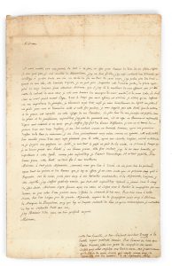 marquise dePOMPADOUR]. 1 page grand infol. EXTRAORDINAIRE LETTRE DE LATUDE, EN PRISON DEPUIS QUATORZE ANS MALGRE DEUX EVASIONS, A CELLE QUI A ORDONNE SON INCARCERATION. "Madame Si vous voulez ma vie prenez la tout à la fois, ou cesses pour l'amour de dieu, de me faire soüffrir je n'en puis plus, je suis accablé de rhumatismes, j'ay un bras foible, j'ay aussi contracté une descente qui m'oblige à porter toute ma vie un cercle de fer autour de mon corps, j'ay perdu plus des trois quart de ma vüe (...) de grace ayez pitié de moy. Daignyez faire attention Madame que si j'ay eü le malheur de vous offenser, que fa a été contre la volonté de mon creur (...) Dans le temps que mon affaire est arrivée je n'etois qu'un enfant cet une imprudence de jeunesse”... Il vient se jeter à ses genoux et demander pardon : "j'ay plus de quarante ans (...) depuis cent soixante et un mois que je souffre j'ay fait des bonnes refflexions, je vous en ai donné des preuves dans mes deux evasions, je me suis conduit comme un honnête homme, apres ma premiere evasion de la tour de Vincennes, je me livra généreusement moy même comme un agneau (...) Apres ma seconde evasion, arrivé en Hollande où je croyois ma personne en sureté, je mis tout le passé au pied de la croix”... Il la supplie au nom du "precieux sang” de mettre fin à ses souffrances et prie Dieu : "bon dieu daigne par ta grande Misericorde inspirer de la compassion pour moy à Madame la Marquise de Pompadour”. Il signe "Danry” (nom sous lequel il avait été écroué, et dont il signa ses Mémoires à Mme de Pompadour) et ajoute : "à la bastille depuis quatorze années. Pour l'amour de dieu ma Reine daignez jetter vos yeux de compassion sur nous Laissez moy aller consoler ma tendre mere, ma pauvre mere qui a besoin de mon secours qui compte comme moy ses moments par des larmes”.