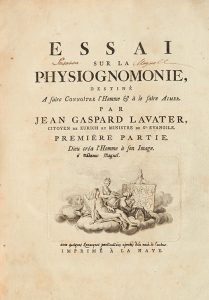 LAVATER (Jean Gaspard). Essai sur la physiognomie, destiné à faire connoitre l'homme & à le faire aimer. La Haye, Jacques van Karnebeek, [1783]-1786. 3 volumes grand in-4, veau raciné, dos lisses ornés, roulette dorée encadrant les plats,...