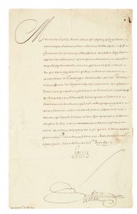 adresse avec sceau aux armes sous papier. CONTRE LES FILLES A SOLDATS. Ayant été averti "qu'il y a dans mes troupes plusieurs filles et femmes desbauchées, et quil s'y commet des jurementz et blasphemes execrables, jay faict expedier une ordonnance pour reprimer severement ces crimes [... à] faire publier et observer exactement en mon armée de Catalongne, faisant faire par les prevostz et leurs officiers une diligente recherche, et punition exemplaire de tous ceux qui ozeront y contrevenir, ne desirant rien davantage que d'empescher une si detestable licence qui peust destourner l'assistance et la benediction qu'il a plu a Dieu jusques icy verser sur mes desseins, et sur mes armes”.