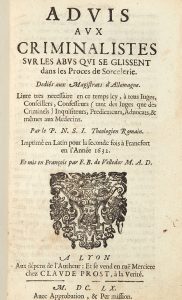 SPEE (Friedrich von). Advis aux criminalistes sur les abus qui se glissent dans les proces de sorcelerie. Dediés aux magistrats d'Allemagne. Livre tres necesaire en ce temps icy, à tous juges, conseillers, confesseurs (tant des juges que des...