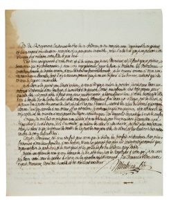 [Incarcéré depuis 1777 au fort de Vincennes, sur lettre de cachet par ordre de son père, après s'être enfui avec sa maîtresse Sophie de MONNIER, Mirabeau implore la clémence du père de son épouse bafouée, seule personne avec sa fille à pouvoir lui accorder sa mise en liberté.]