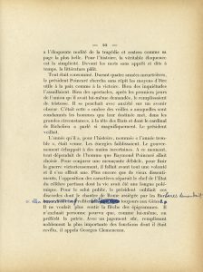 Élu le 28 mars 1935 au fauteuil de Raymond Poincaré, Jacques Bainville fut reçu sous la Coupole quelques semaines avant sa mort, le 7 novembre 1935. Il retrace dans son discours la vie, la carrière et l’œuvre de Raymond POINCARÉ. 9 pages portent des corrections autographes à l’encre bleue.