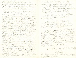 4° Une longue discussion avec un ministère à propos d’une mission à Londres (pour l’année prochaine). (Trop long à raconter). Il faut pour l’obtenir rester dans la Revue Européenne. Si je la quitte pour la Revue des deux Mondes, la mission est perdue. [Il s’agit d’une mission relative à l’Exposition universelle à Londres en 1862.]