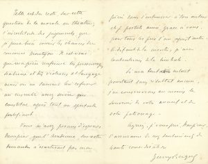 Becque a envoyé à l’Académie sa dernière pièce au concours de la fondation Montyon « pour les ouvrages utiles aux mœurs. J’espérais que ce concours n’était pas le seul et que l’Académie pour les œuvres de théâtre disposait d’une récompense débattue entre l’art et la morale. […] Il est vrai que ma pièce renferme des personnages scabreux et des violences de langage mais on ne saurait lui refuser un ensemble assez sévère qui constitue après tout un spectacle fortifiant. Vous m’avez permis d’espérer […] que l’Académie, sur votre demande, n’écarterait pas ma pièce sans s’intéresser à son auteur et je postule aussi, grâce à vous, pour tous les prix l’un après l’autre. À défaut de la montre, je me contenterai de la timbale »…