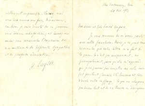 à propos de sa candidature, regrettant vivement de ne pouvoir compter sur la voix de son correspondant, et de se « trouver en divergence de pensée et de sentiment avec un esprit que j’admire et que j’aime » ; il a longuement hésité et consulté avant de se présenter, et il est maintenant impossible de retirer sa candidature…
