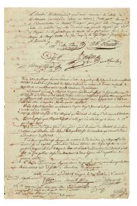 conditions dramatiques dans lesquelles sont détenus, dans la maison d'arrêt du Calvaire, "une multitude d'enfants qui ne sont coupables que des fautes de leurs pères, ou plutöt qui sont innocents”. La maladie s'étend de jour en jour, et tous ceux qui s'occupent de ces enfants subissent la contagion de ces "miasmes putrides”. Le Comité Révolutionnaire (6 signatures dont le président BRUTUS-Thierry, Tell Obrumier, MARAT BOUSSAC...) renvoie au District. Le District d'Angers (6 signatures) décide d'enlever de la prison tous les enfants âgés de 7 ans et au-dessous et de les confier "à des citoyenes qui voudront se charger de les nourrir et entretenir”, et à qui on versera 12 livres par enfant et par mois "sur les fonds destinés à l'entretien des Enfants de la patrie”. Louis-apostille autographe signee de Pierre ,A la suitePRiEUR de la Marne (1756-1827), contresignée par Pierre-Anselme GARRAU (1762-1819, Gironde), Représentants du peuple, qui approuvent, Nantes 14 ventose II (4 mars 1794).