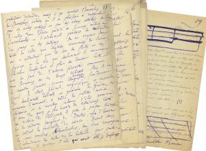Le manuscrit se compose de 6 feuillets entièrement autographes à l’encre violette (pages 13 à 18) et de 13 feuillets d’une autre main, la plupart avec corrections autographes portées par France à l’encre violette.