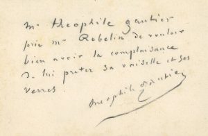 « M. Théophile Gautier prie Mr Robelin de vouloir bien avoir la complaisance de lui prêter sa vaisselle et ses verres »…