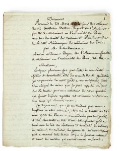 manuscrit autographe, signé en tête ; 7 pages in-4. UILLOTING LOGE DE Éi. Après avoir esquissé l'enfance de son ami, ses principales qualités et traits de caractère, il retrace son parcours et note son goüt très tot affirmé pour la médecine. Il mentionne ainsi sa thèse au Collège d'Aquitaine à Bordeaux pour passer maitre ès arts, son entrée dans l'ordre des Jésuites pour lequel il professa quelques temps dans un collège ; "cependant l'obéissance passive était trop opposée à sa fafon de penser pour qu'il restât longtems attaché à cette société”. ; puis son inscription à la Faculté de Médecine à Paris où il obtint la licence qui lui permit d'être refu Docteur... Bourru revient sur les travaux les plus marquants de Guillotin, notamment ses études sur le "Magnétisme animal” au sein d'une commission nommée par LOUIS XV, avec FRANKLIN, BAILLY, Le ROI entre autres savants célèbres : "on lui doit d'avoir imaginé diverses épreuves au moyen desquelles le charlatanisme qui fit alors tant de bruit, fut réduit à sa juste valeur et comparé à peu près à ces extravagances qui avoient eu lieu une cinquantaine d'années auparavant au cimetière de St Médard de Paris” [les Convulsionnaires]. Il évoque également l'entrée en politique de Guillotin avec sa Pétition des six corps de Marchands de la Ville de Paris en décembre 1788 : "cet ouvrage concis, clair et fort de raisonnement lui acquit une célébrité qui le mena à être élu membre des États generaux”. Ses connaissances médicales lui valurent d'être nommé à la tête d'une commission relative à l'état sanitaire "pour tout ce qui tenoit à l'état sanitaire” de cette nombreuse Assemblée : "Le zèle de M. Guillotin ne se borna pas là. Il eut quelque part à la fameuse declaration des droits de l'homme et à la constitution qui en fut la suite. Il presida pendant les années 1790 et 1791 une commission instituée pour proposer la meilleure organisation d'Écoles de Medecine, de Chirurgie et de Pharmacie. Enfin, lorsque toute l'Assemblée eut decidé que les crimes etoient personnels et que les parens des criminels ne devoient participer en rien à la honte qui les accompagne, M. Guillotin proposa de substituer la décapitation à tout autre supplice ; se fondant sur ce qu'il etoit refu en France que cette peine n'etoit point infamante pour la famille du supplicié qu'elle ne deshonoroit point. Malheureusement pour notre confrère sa notion philanthropique qui fut accueillie et a donné lieu à un instrument auquel le vulgaire a appliqué son nom, lui a attiré beaucoup d'ennuis ; tant il est vrai qu'il est difficile de faire du bien aux hommes, sans qu'il en resulte pour soi quelques désagrémens. Qui sait même si ce n'est pas par suite de ces inimitiés qu'un homme dont la vie a été si utilement employée au bien de l'humanité, soit dans sa carriere politique, soit dans sa carriere medicale, n'a pas été distingué par le gouvernement ou par quelque decoration, ou par quelque place éminente ? Qui sait encore si ce système de philanthropie qu'il professoit ouvertement n'a pas été la cause de ce qu'on l'a vexé et même cherché à le faire punir ?”. Bourru rappelle ainsi l'emprisonnement de Guillotin auquel seuls des "hazards inesperés” mirent fin, avant de conclure par une brève évocation de ses derniers moments, où il paraissait "dormir du sommeil le plus calme”.