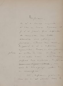 Le manuscrit est signé et daté en fin « Dieppe août-septembre 1885. Il est écrit à l’encre noire au recto de feuillets pliés pour marquer une marge sur la gauche ; paginé 1-73 (avec quelques pages à double numérotation et des bis), il présente de nombreuses ratures et corrections, et des notes ou faux départs au verso de quelques feuillets, et, après le titre, un feuillet de dédicace à Camille DOUCET : « J’offre à Monsieur et Madame Camille Doucet ce manuscrit de mon discours de réception à l’Académie Française en témoignage de mes sentiments de respectueuse affection et de cordiale reconnaissance. 12 Février 1887. Ludovic Halévy ». On relève des variantes avec le texte publié.Ex-libris de Camille DOUCET.