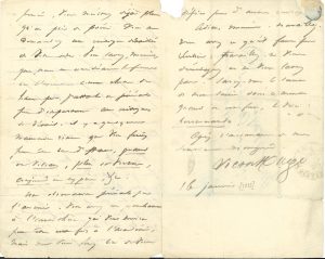 HUGO Victor (1802-1885) [AF 1841, 14e f]. — L.A.S. « Victor Hugo », 16 janvier [1833], à M. MAYER à Strasbourg ; 3 pages in-8, adresse (petite déchirure par bris de cachet, petite fentes).