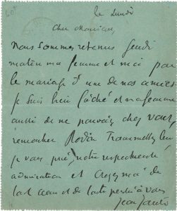 JAURÈS Jean (1859-1914) homme politique. — L.A.S. « Jean Jaurès », Lundi [11 juin 1900], à Anatole FRANCE ; 1 page in-12, adresse au verso (carte pneumatique fermée).