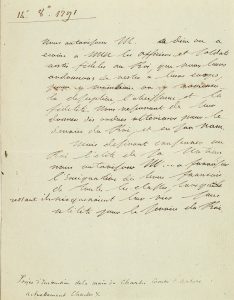 CHARLES X (1757-1836). Pièce autographe, 14 octobre 1791. 1 page in-4. PROJET D'INSTRUCTION DE LA MAIN DU CÖMTE D'ARTOIS PÖUR LES MILITAIRES AU DEBUT DE LA REVOLUTION. "Nous autorisons M. à dire ou à écrire à MM les Officiers et soldats...