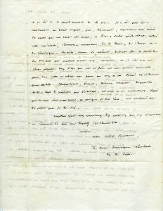 • une L.A.S., 23 janvier 1861, à Adolphe Desmoulins, 23 janvier 1861, pour retirer à l’Institut auprès d’Antonius Pingard deux exemplaires de son discours.