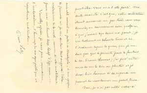 « Je vis tellement en dehors de Paris et de l’Académie depuis la guerre, que je ne sais pas qui se présente ». Il n’a pas oublié son si aimable accueil « au Palais de Mustapha [à Alger], à une époque de jeunesse où je me sentais tout angoissé d’être académicien de la veille, comme si cela constituait pour moi un brevet trop hâtif d’âge mûr »… En haut de lettre, il ajoute qu’il vient de recevoir la liste des candidatures : Je ne suis engagé avec aucun d’eux et je suis tout heureux de m’engager formellement avec vous »…
