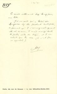 MALRAUX André (1901-1976). — L.A.S. « AM », [à Agnès CAPRI] ; demi-page in-8 à l’en-tête de la nrf.