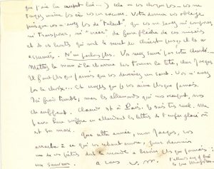 « Rassurez-vous, cher Jacques, je ne reprends pas une affection une fois que je l’ai donnée, à moins de trahison… et je sais bien que vous n’avez pas voulu trahir. C’était à moi de ne pas me confier à une “ville ouverte” […] votre inconscience est entière. Le fait de livrer en même temps que vous, vos amis (dont il eût été facile de ne pas donner les noms !) à une dactylo de rencontre et à votre frère [..] et de me livrer moi-même à Claude [...] cela ne vous choque pas – vous ne songez même pas à vous en excuser. Votre démon vous oblige, puis que vous n’avez pas de “talent”, que vous ne savez ni composer, ni transposer, ni “créer”, de faire flèche de ces misères et de ces hontes qui sont le secret du Christ puisqu’il les a assumées. Vous serez sauvé par votre charité. […] Il faut plus que jamais que vous deveniez un saint. Vous n’avez pas le choix… Et croyez que je vous aime plus que jamais »… Il est seul, il fait un froid terrible, « mais les allemands qui nous occupent, nous chauffent »… Il engage Jacques à « devenir un de ces prêtres dont le monde a besoin plus que jamais : un sauveur »…