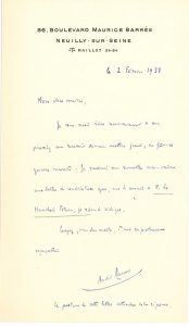 14 janvier, le félicitant sur son élection comme Secrétaire perpétuel, après René Doumic…