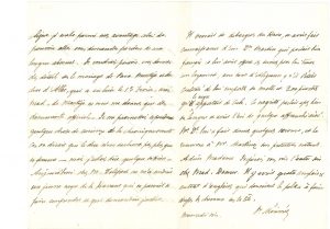 « Si un candidat pouvait mourir de honte Madame je serais mort pour avoir été si longtemps sans vous voir. L’horrible métier que je fais depuis six semaines est une très mauvaise excuse, mais hélas je n’en ai pas d’autre, et j’aime mieux convenir franchement de mes crimes que de chercher à les pallier ». Il voulait aller la voir à Bondy, mais il est passé avant aux Batignolles visiter le dernier Académicien qu’il lui restait à voir. Il redeviendra enfin « demain un homme ordinaire, car je n’espère pas être Académicien » : être candidat c’est déjà beaucoup et il a hâte de pouvoir aller lui demander pardon de sa longue absence. Il aimerait pouvoir lui donner des détails secrets à propos du mariage de Mlle de MONTIJO et du duc d’Albe qui a eu lieu le 15 février, mais n’a que des documents officiels. Il raconte une étrange aventure d’un « jeune nègre de La Havane » qu’on lui a amené et qui réclamait justice après s’être fait dépouiller de ses biens à son arrivée au Havre, etc.