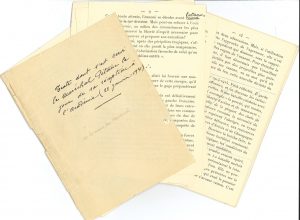 La chemise contenant ces pages d’épreuves est rédigée de la main du Maréchal Pétain : « Texte dont s’est servi le Maréchal Pétain le jour de sa réception à l’Académie (22 janvier 1931) ».