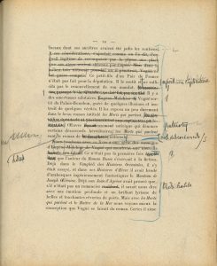 Une première épreuve, avec timbre à la date du 27 juillet 1911, porte de nombreuses corrections et additions marginales. La seconde épreuve est ici en deux exemplaires, tous deux présentant les mêmes corrections, avec des additions et des passages biffés.
