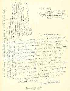 SUPERVIELLE Jules (1884-1960). — L.A.S. « Jules Supervielle », Le Randon, Olivet (Loiret) 31 janvier 1956, à André MAUROIS ; 1 page in-4.
