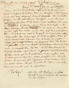 DUFRICHE-VALAZÉ (Charles-Eléonor,1751-1793) conventionnel (Orne) ; membre influent du parti Girondin, condamné à mort, il se poignarda en entendant la sentence. Lettre autographe, [Conciergerie] 7 octobre an II (1793), à SA femme à Alenfon. 1...