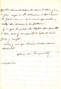 TOCQUEVILLE Alexis de (1805-1859) [AF 1841, 18e f].L.A.S. « Alexis de Tocqueville », 18 avril 1841, à Stéphen de LA MADELAINE ; 2 pages in-8, adresse.