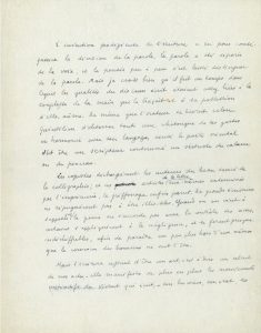 « L’invention prodigieuse de l’écriture a eu pour conséquence la division de la parole. La parole a été séparée de la voix, et la pensée peu à peu s’est laissé distinguer de la parole. Mais je crois bien qu’il fut un temps dans lequel les qualités du discours écrit étaient assez liées à la souplesse de la main qui le traçait et à sa possession d’elle-même »…