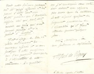 ▬ On joint une note autographe sur une enveloppe au sujet de Lamartine en 1863 à propos d’une « Lettre lithographiée. Sorte de circulaire de Lamartine en date du 8 avril – pour un emprunt. […] On emploie dans cette circulaire un langage rusé en prétendant répondre à des offres de service imaginaires »…