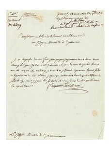 general Custine [Adam-Philippe de Custine (1742-1793)], condamne pour intelligence avec l'ennemi et guillotine le matin meme. II annonce que, par jugement du 27, "Adam Philippe Custine a été condamné à la peine de mort et que ses biens ont été acquis à la nation : je viens d'en informer le procureur général sindic du département du Bas Rhin : je crois que Custine a des biens à quelque distance de Strasbourg ; mais j'ignore leur situation et s'il en a dans d'autres points dans la république”.