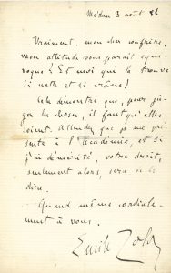 ZOLA Émile (1840-1902). — L.A.S. « Emile Zola », Médan 3 août 1888, à un « cher confrère » ; 1 page in-8.