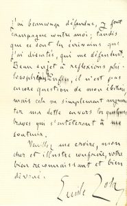 ZOLA Émile (1840-1902). — L.A.S. « Emile Zola », Paris 25 mai 1892, à un « cher et illustre confrère » ; 2 pages in-8.