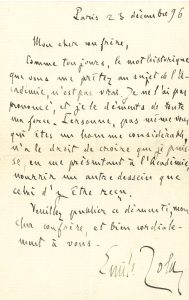 « Comme toujours, le mot historique que vous me prêtez au sujet de l’Académie, n’est pas vrai. Je ne l’ai pas prononcé, et je le déments de toute ma force. Personne, pas même vous qui êtes un homme considérable, n’a le droit de croire que je puisse, en me présentant à l’Académie, nourrir un autre dessein que celui d’y être reçu »…