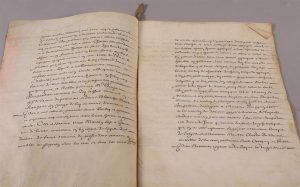 [1660. PARIS]. 6 juillet 1660. Contrat d'achat de maisons rue de Bievre, à Paris, pour Charles Bouchardeau représenté par son frère Guillaume ; grevées d'un cens pour l'Abbaye Ste-Geneviève du Mont. 10 pages in-4 sur parchemin.- Charles...