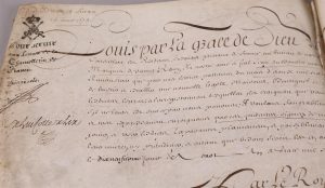 Roi, Prévôt des marchands et des échevins de Paris, adduction d'eau pour la nouvelle halle aux volailles appartenant à Jean Duboucher marquis de Sourches et dame Françoise Le Prévost, femme de messire Jean de Courtavel. Sceau pendant. Pièce 41 x 21 cm.- LOUIS PAR LA GRÂCE DE DIEU ROI DE France ET DE NAVARRE aux membres du bureau des finances de Paris : demande par lez roi d'enregistrer sa décision donnée au marquis de St Rémy et à dame Françoise Le Prévost de bâtir une nouvelle halle à volailles et gibier. Nancy, 19 aoust 1673. Signé LOUIS, Colbert, enregistré le 24 novembre 1673. Pièce 53 x 30 cm.