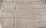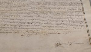 [1699]. (Médecine). Lettres de doctorat en médecine de l'Université d'Avignon pour François de Trivio, parchemin 73 x 45 cm., 1690-96, encres noire et dorée. Beau document.