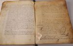 François Terrasson et Geneviève son épouse 2 maisons joignantes rue de la Seulerie au sud du petit cloitre de Ste-Opportune. Avis de quittance par les Chanoines de l'église de Ste-Opportune, 1719-1721. Cahier in-folio de 8 pages.