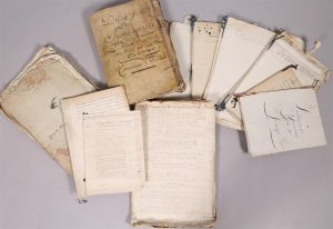 395 000 livres le château du Lude (Sarthe). Joseph Julien Duvelaër dirige le comptoir français de Canton pour la Compagnie des Indes, et, son frère Pierre est un des directeurs de la Compagnie des Indes. Joseph Duvelaer a amassé une fortune considérable, anoblit par Louis XV. Décédé sans descendance, ses héritier furent ses deux nièces filles de ses deux soeurs.La fraterie :.Pierre DUVELAËR, sgr de Kerveguen 1699-1755 Marié le 8 novembre 1735, Lorient (56), avec Elisabeth du VAL d'ÉPREMESNIL 1718-/1740 (puis) Marié le 27 mai 1740 avec Marie Elisabeth MARCADÉ 1789.Françoise du VELAËR 1702-1742 Mariée le 27 février 1736, Recollets, Saint-Malo (35), avec Jean MOREAU, écuyer 1694-1770 dont- Françoise MOREAU ca 1738-1774 Mariée avec Jean-François NOUAIL de La VILLEGILLE .Joseph (anobli) DUVELAËR, comte du Lude 1709-1785 Marié avec une chinoise de Canton.Marie Françoise DUVELAËR 1711-1757 Mariée le 23 juin 1740, Saint-Malo (35), avec Richard BUTLER 1696-/1749 dont- Françoise de BUTLER, Héritière du Lude 1741-1798 Mariée le 10 avril 1758 avec Etienne Auguste BAUDE de VIEUVILLE, voir Guillotinés 1713-1795 dont : Auguste Joseph BAUDE, comte de la Vieuville 1760-1835 et Elisabeth BAUDE de La VIEUVILLE 1764-1814Description :Importante archive en très belle condition, et rangée avec beaucoup d'ordre, comprenant :« Du 19 Juillet 1785. Scellé après le décès de Monsieur le Comte Dulude à son hotel rue notre-Dame Des Victoires. Commissaire Thiot ». In-folio de 300 pages manuscrites, reliure vélin époque, quatre lacets d'attaches. En tout 74 vacations du Commissaires pour les inventaires, appostion de scellés, etc..Joint deux pièces: 1785. Journal de la succession de feu M. Le Comte Dulude. In-folio de 70 pages manuscrites, 12 pages vierges et un double feuillet comportant le titre et servant de couverture. Débute le 6 septembre 1786 et se termine le 4 juillet 1787. Proces verbal de Meubles après les décès . In-folio de 254 pages manuscrites et un feuillet de titre Vente du mobilier comprenant 1912 lots se déroulant sur 11 vacations entre le 28 Novembre 1785 et le 7 janvier 1786, chaque lot comporte le nom de l'adjudicataire et le montant atteint. Signé du commissaire-priseur Simoneau. (manque de papier au feuillet de titre, petit manque de papier angulaire aux 4 premiers feuillets avec atteinte au texte). Ces trois pièces sont les copies destinées aux exécuteurs testamentaires, Marquis de Vieuville et de La Villegille.Dossier Comptes de successions. Note sur la chemise « ces pièces quoique peu intéressantes sont bonnes à garder pour y avoir recours au besoin » 11 pieces : Etablissement de 4 soeurs à Vitré, 1787 Etat des différentes sortes de bien qui composent la succession de M. le Comte de Lude. Etat sommaire de l'inventaire Etat des différentes natures des biens. Résultat de la masse des biens. Compte(s) succession. 10 pièces in-4 et in-folio de 74 pages manuscrites. Dépouillement de l'inventaire après décès de M. le Comte Du Lude commencé le 18 aout 1785. In-folio, 79 pages manuscrites.Dépouillement de l'inventaire de M. le Comte Du Lude ; Objet dépendant () sur lesquels il y a des démarches ou poursuites à faire ; Billets d'honneur. 13 pièces.Ensemble de 46 pièces : Compagnie des Indes. Expéditions en Chine, financements. Contient les quittances, actes de la Société, Décharges, Comptes arrêtés.Liquidation des intérêts de feu M ; le Comte Du Lude chez M. Grandclos Meslé. (Concernant Affaires de Bretagne, Loterie, Expédition en Chine.) 1786-1788, 2 cahiers grand in-folio, 22 pages.Papiers divers se référant aux activités et affaires de la famille Duvelaer : Succession de Jeanne Duvelaer, décédée à Vitré en 1795. 11 pièces entre 1802 et 1815. Succession de Joseph Duvelaer, 1748, 2 pièces in-folio de 12 pages chacune. Créance sur Mr Caradeuc de La Chalotais Procureur général du Parlement de Bretagne. 19 pièces entre 1764 puis 1776 et 1780. - Succession Pierre Duvelaer, sgr de Kerveguen, directeur de la Compagnie des Indes, 1699-1755. 4 pièces de 27 pages manuscrites sur papier et parchemin. Vente de la terre et seigneurie de Valmer en Touraine, par M. Develaer et Marie Marcadé à M. Chaban, 3 pièces, 31 pages manuscrites.Papiers succession Pierre Duvelaer. 18 Pièces : Testament de Mr. Pierre Duvelaer chevalier seigneur de Kerveguen, directeur de la Compagnie des Indes, Fait à Londres le 8 juin 1754, confirmé à Paris le 21 février 1755. 3 copies de 7, 8 et 8 pp. in-folio certifiées des notaires. - Contrat de mariage de Pierre Duvelaer et Marie Marcadé, 27 mai 1740, 8 pp. in-folio certifiées des notaires. Liquidation de la succession de Mr pierre Duvelaer entre Madame Duvelaer sa veuve et Monsieur le Comte du Lude son frère, son légataire universel et seul héritier au moyen de la renonciation de ses autres et présomptifs héritiers. 1756, in-folio 129 pp. Différence qu'il y a entre la liquidation et les opérations qui résultent du testament. 6 pp. in-folio. Partage des successions de noble Joseph Duvelaer et de Françoise Henry son épouse, 9 avril 1748, 12 pp. in-folio. - Partage des biens et effets de Duvelaer père et mère et autres. 11 pièces. L'ensemble: