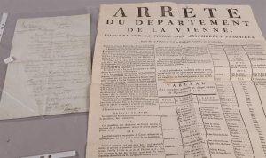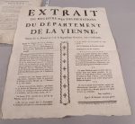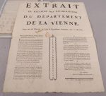 [1793. POITOU]. Révolution. Département de la Vienne. 5 pièces imprimées (1793-1799), et une nomination manuscrite pour le citoyen Martinière, médecin, An 8. Les 6 pièces :