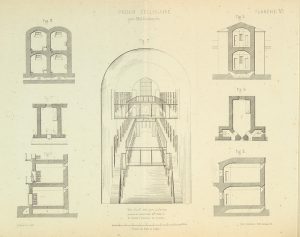 BLOUET (Abel). Projet de prison cellulaire pour 585 condamnés, précédé d'observations sur le système pénitentiaire. Paris, Firmin Didot, 1843. In-folio, cartonnage moderne, couverture conservée. Édition originale. Elle est illustrée de 6...