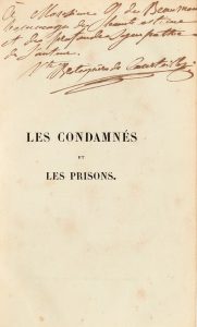 BRETIGNÈRES DE COURTEILLES (vicomte). Les Condamnés et les prisons ou Réforme morale, criminelle et pénitentiaire. Paris, Perrotin, Just Tessier, 1838. In-8, demi-veau vert, dos lisse orné or et à froid, tranches marbrées (reliure de...