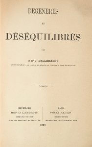 DALLEMAGNE (Jules). Dégénérés et déséquilibrés. Bruxelles et Paris, 1895. Fort in-8, demi-maroquin rouge, non rogné, couverture conservée (reliure moderne). Édition originale de cet essai important du médecin et criminologue belge Jules...