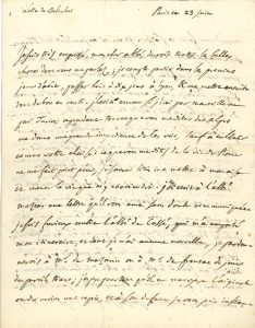Belle lettre sur les nouvelles du temps, avant son voyage en Italie.
